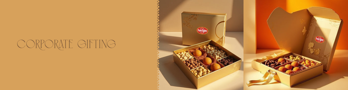 At Pune Bytes, we craft bespoke corporate gift boxes that blend authentic sweets, and modern snack assortments with elegant, customizable packaging.