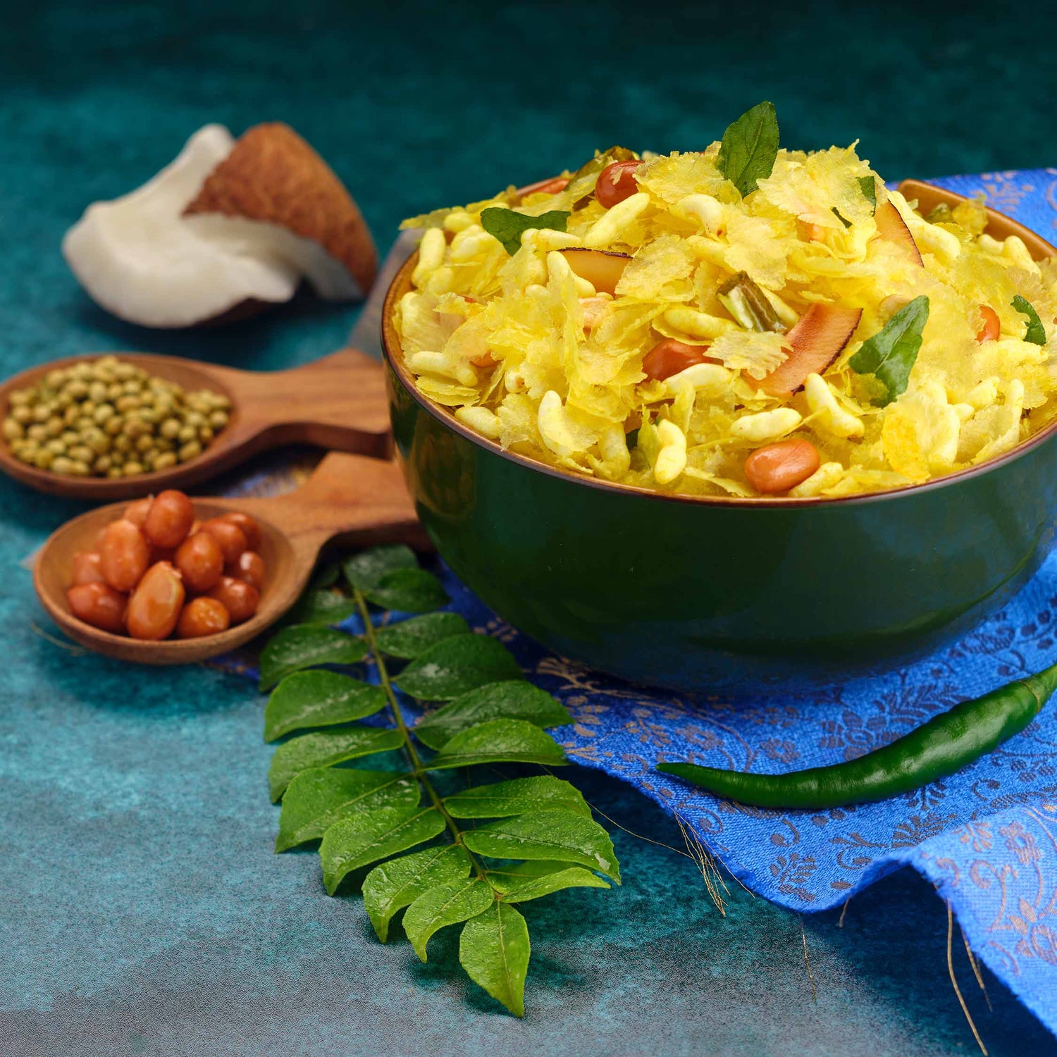 Patal Poha Chivda is a light, crunchy snack made from thin, roasted rice flakes blended with spices. It’s a perfect mix of taste and crispiness without being too heavy. A wholesome choice for tea-time or anytime hunger. Relished across homes as a traditional, flavorful treat.